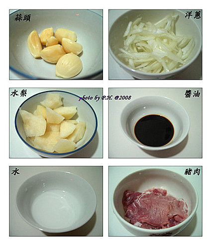 第一次嚐到韓國烤肉就對它感到驚奇,與從小到現在用木炭的烤肉風味有所不同,一直想知道它的配方,喜歡它的香甜,但是不僅是砂糖的甜味,想不出到底又加入了什麼特殊味道,讓它還帶有果香。直到數日前從電視節目「異國美食輕鬆做」看到韓國烤肉的料理方法,趁著還有記憶時趕緊學著做看看。